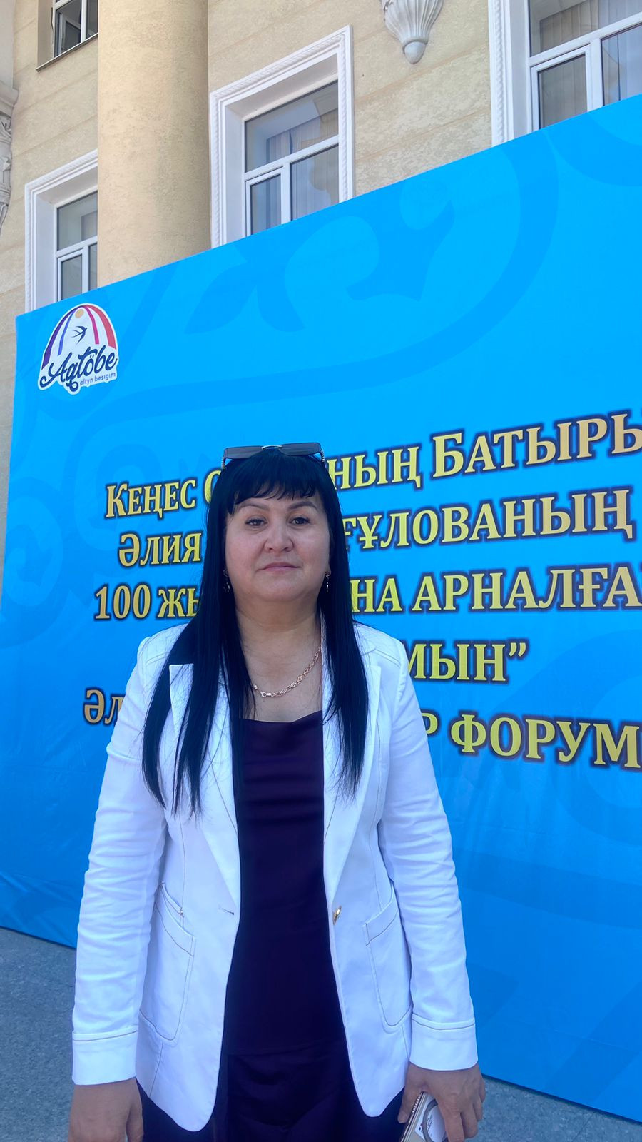 -Ойыл ауданында дүниеге келдім. Мұғалім болып қызмет жасадым. Темір колледжінде сабақ бердім. Сол жерден зейнетке шықтым. Әлия форумы ауқымды шара болды. Тәрбиелік мағынасы зор. 100 жыл өтсе де батыр апамыздың аты айтылып рухталып жатыр. Екі ұлым бар. Болашақта немерелерімнің атын батыр апамыздың атын ұлықтап Мәншүк деп қойғым келеді.