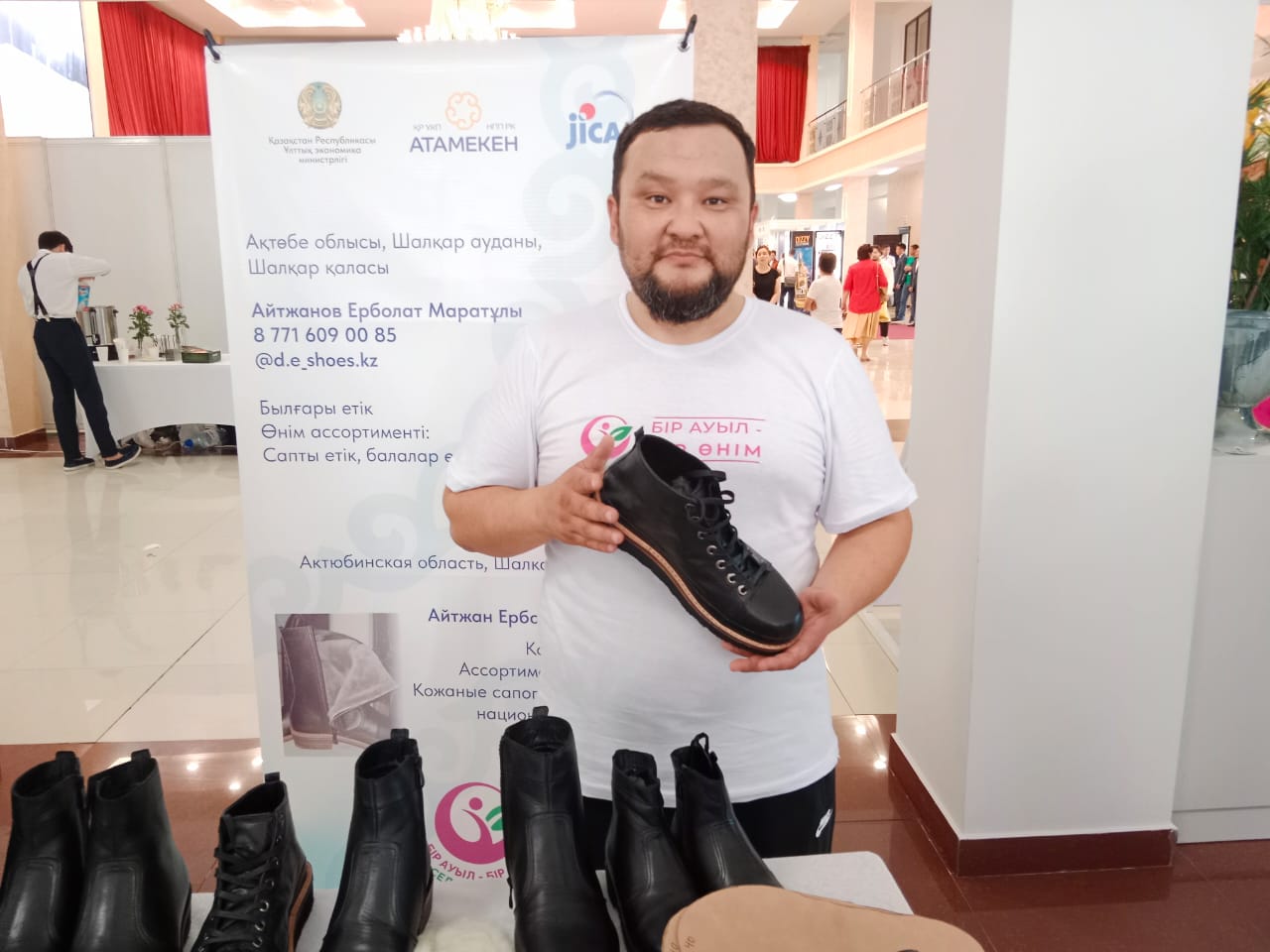 Жеңімпаздарды таңдауда кәсіпкерлердің өз өндірісінде тек жергілікті шикізат пен қол еңбегін қолдануына ерекше назар аударылды. Сондай-ақ өнім дизайнының әлеуеті, қаптамасы, тауардың өңірлік ерекшеліктері мен оның ішкі және сыртқы нарықтарға шығу мүмкіндігі бағаланды. Көрмеге қатысқан Ерболат Айтжанов келушілерге көпшілік үшін таңсық аяқ киім тігу кәсібін таныстырды. Кәсіпкер бүгінде шикізатты Алматы мен Шымкент қалаларынан алдырады. Айтуынша, болашақта шағын цехта етікке қажетті теріні өңдеп, былғары әзірлеуге мүмкіндік бар. Алайда әзірге қаржының тапшылығы қолбайлау болып отыр.